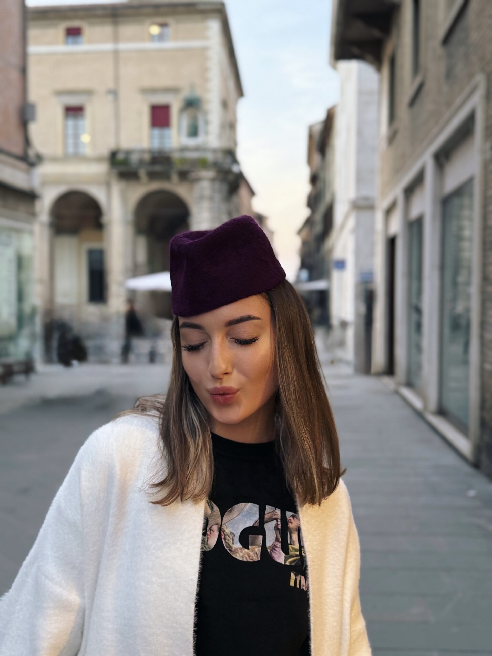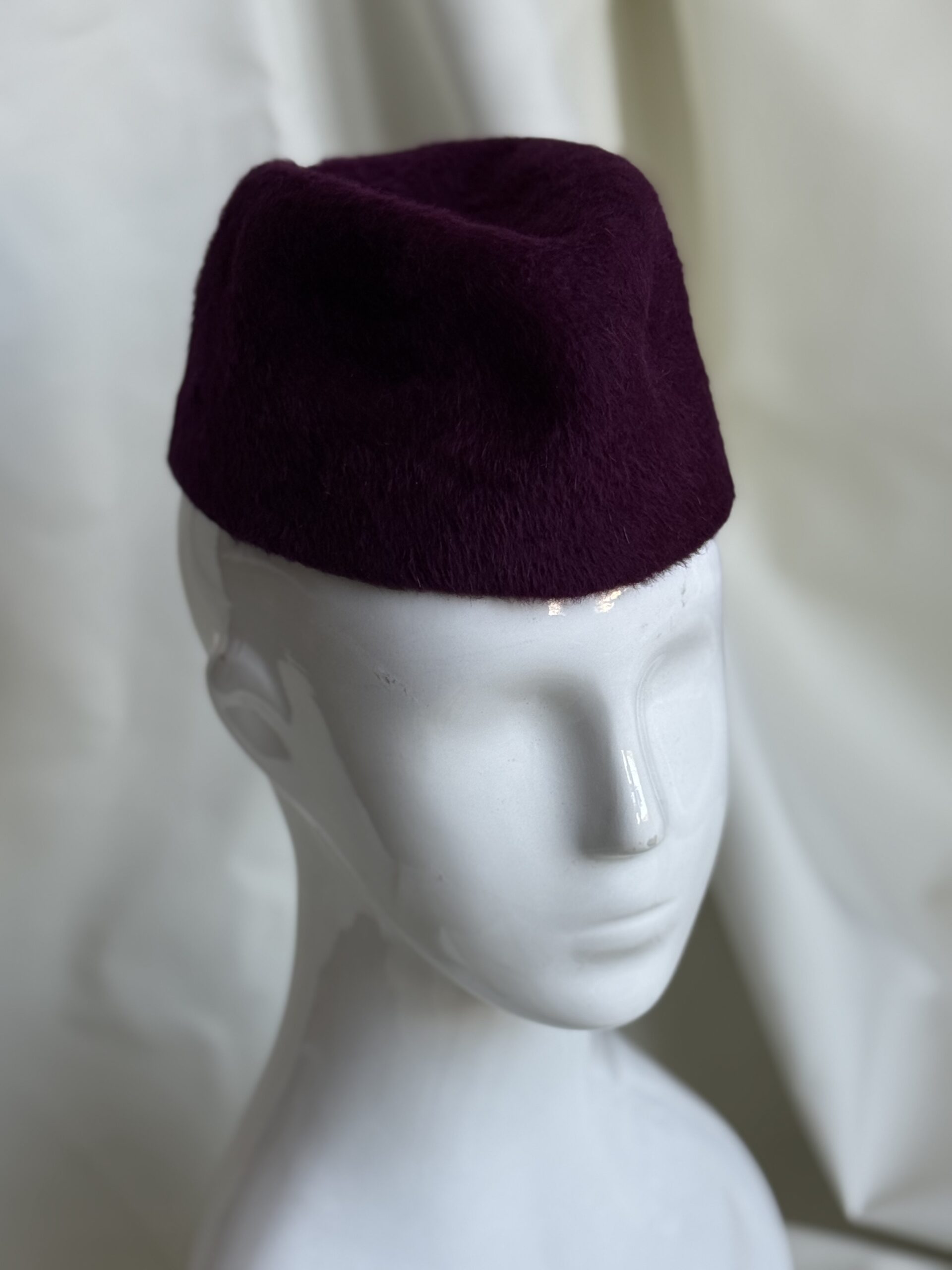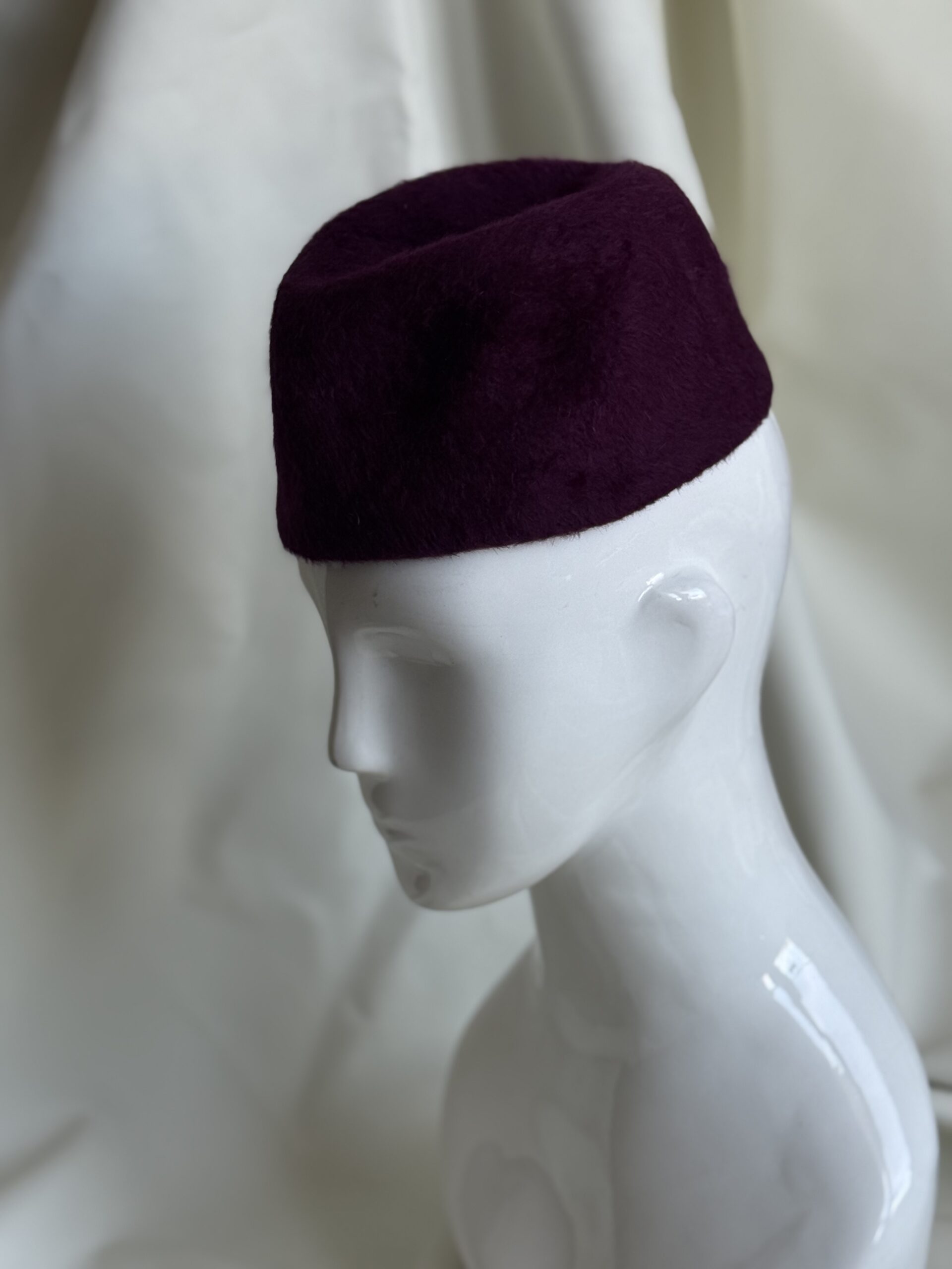 • Modello: cappellino stile pillbox (senza visiera), silhouette compatta e pulita